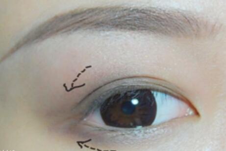 第一步:打好底妆,画一个上挑细眉,自己眉毛粗可以用遮瑕膏盖掉,戴了一副只有扩瞳效果的黑棕色美瞳,用黑色或者深棕色哑光眼影在眼睛后半部加深。