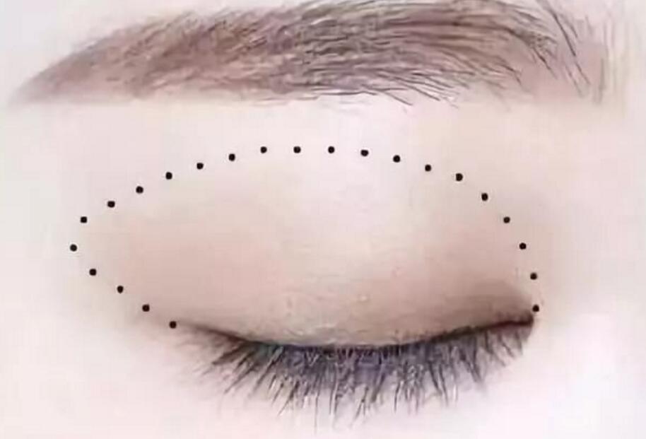 这样的画法能在放大眼睛的同时让你看起来更有女人味: 单眼皮眼影画法:第1步:先用浅棕色的眼影在上眼皮(在下图中的黑色虚线范围内)部位晕染开来; 第2步:用浅棕色眼影在下眼皮,沿着下睫毛根部(黑虚线内)窄窄的晕染一条眼影; 第3步:用杏色的珠光眼影,在上眼皮正中间(黑虚线内)来提亮; 第4步:用深棕色的眼影在上眼皮的首尾两端(黑虚线内)晕染开,注意要有由深到浅的感觉; 第5步:用深棕色眼影在下眼尾的三角形处(下图黑虚线内)晕染; 第6步:最后画上一条上扬的外眼线,再涂上睫毛膏就画好了~