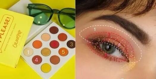 step5:眼头用橘黄色或亮色眼影打亮眼头,让眼睛放大、配色上更活泼,为整个妆容加分!