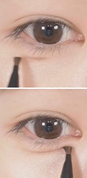 STEP1.用眉笔或眉粉打造眼下阴影,轻轻画在决定好的卧蚕外框范围