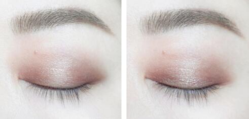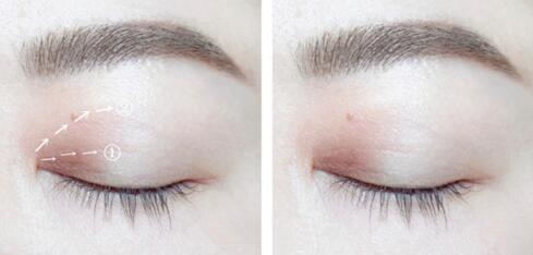 Step1妹子们做好眼部打底之后,首先取一玫瑰棕色眼影,涂抹在双眼皮褶皱内的前1/3处。然后取一把干净的晕染刷,将眼影边缘处向上晕染自然。
