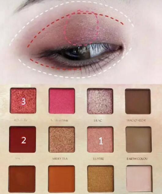 ▲哑光打底色是最适合眼影打底的颜色,能给眼窝带来深邃感,同时也很百搭,能和任何眼影颜色搭配。选择的眼影颜色是浅大地色就最好啦,就算渲染不到位也看不出明显的眼窝分界线,更加自然。