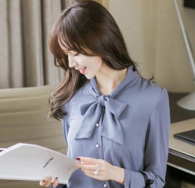蝴蝶结荷叶边雪纺衫