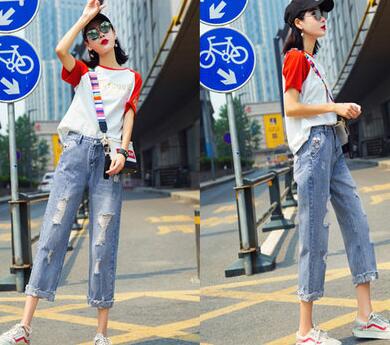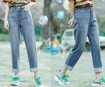 很时髦的宽松牛仔休闲裤,宽松的牛仔裤很早就开始流行了,和紧身牛仔裤比起来更加的舒适,也更加百搭。中腰版型舒适同时更好的修饰腹部线条,显瘦又藏肉,做旧的洗水效果,自然大方,带来怀旧的时尚感。直筒的版型能很好的修饰腿型,显瘦效果也给你意想不到的惊喜哦。随意的毛边剪裁用英文绣花装饰,休闲范中的精致感,露出脚踝的九分长度,是显高挑的心机设计,年轻有活力。