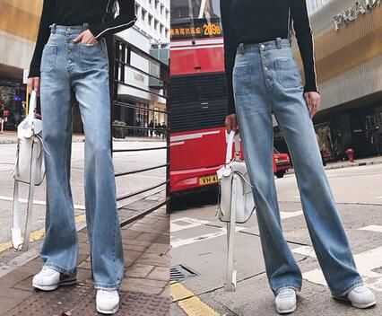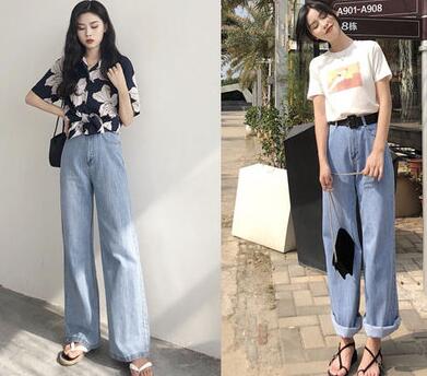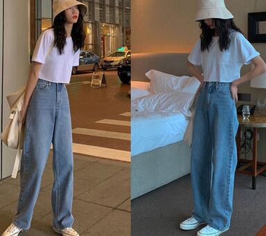 NO.02港风高腰宽松休闲直筒长裤子牛仔阔腿裤