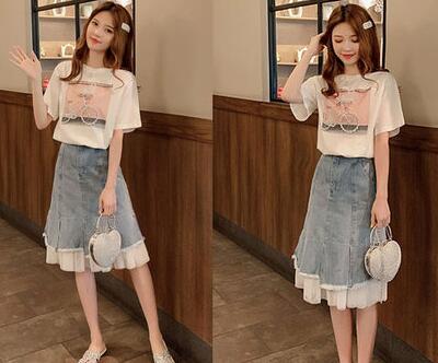 NO.01韩版高腰网纱拼接开叉牛仔半身裙