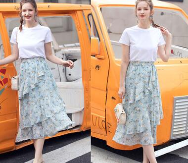 NO.05韩版高腰不规则荷叶边碎花雪纺半身裙
