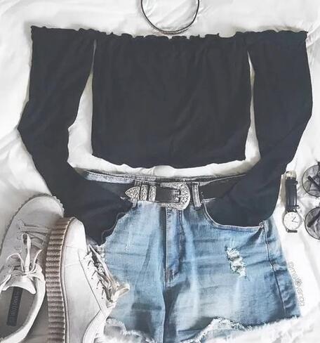 蕾丝短款一字领单品,是不是超级可爱的呢?搭配一件短裤就可以清爽的出门啦,是不是很简单呢?