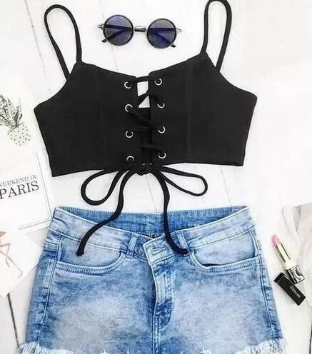 绑带的背心可以说是十分百搭好看了,既可以显得可爱休闲,还可以穿出一种帅气的感觉呢,小编很推荐哦。