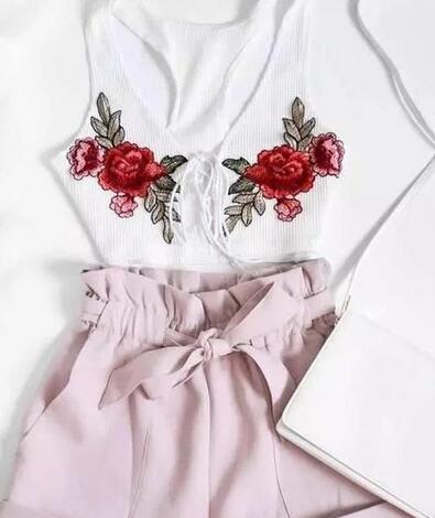 绣花的背心也是显得很好看哦,不仅显得大气,还会有一种温柔的感觉呢,搭配雪纺短裤就是最简单直接的选择。
