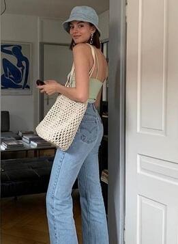 白色的渔夫帽不会在造型中显得很出挑,搭配夏日的浅色系穿搭,会过渡得非常柔和。