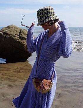 浅牛仔色的渔夫帽适合夏天,会带来很清爽的视觉感。但蓝色驾驭起来有难度,更适合白皮的女生。