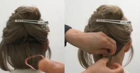 如果真的在意头脖子后面的碎发的话,也可以用卡子直直的将头发卡住,这样做会很隐形的不留碎发~