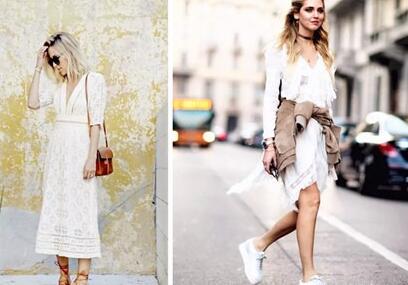 薄纱裙的透肤感更加强烈,所以它一向是仙气的代名词,飘扬的衣摆让衣服看起来充满质感。荷叶边的领口让造型线条变得强烈,不规则的裙摆流线则会变得更有少女气质。配上一条choker充满时尚气息。但是薄纱面料也要注意剪裁不要过于繁琐,否则就会有拖沓的感觉。用外套绑在腰上,会增加裙子的休闲风,搭配上运动鞋就会降低薄纱过于轻飘的效果。