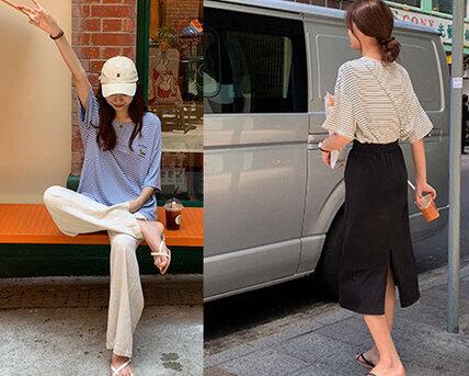 NO.03韩版宽松休闲图案印花圆领套头短袖条纹T恤