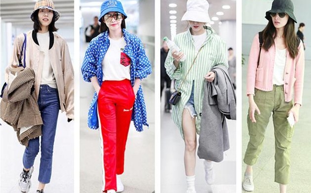 印花渔夫帽很潮很可爱,但是对搭配功底有着一定的要求,比如充满军绿风的迷彩渔夫帽,别人带是高级感满满,放在搭配小白上就是秒变“渔夫”本人了,不仅难搭配还显土气。宋茜的印花渔夫帽看着很少女,但要没有高颜值好衣品支撑,相信也是妥妥的“车祸现场”。