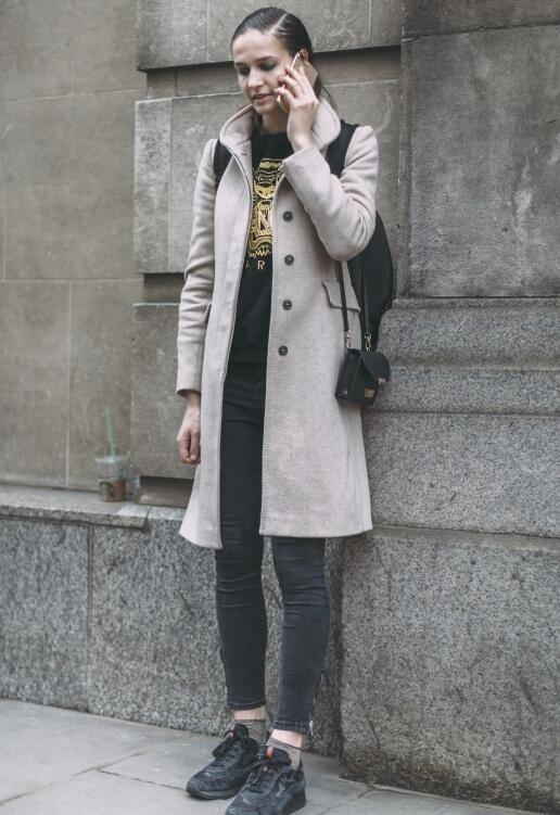 大衣搭配运动鞋
