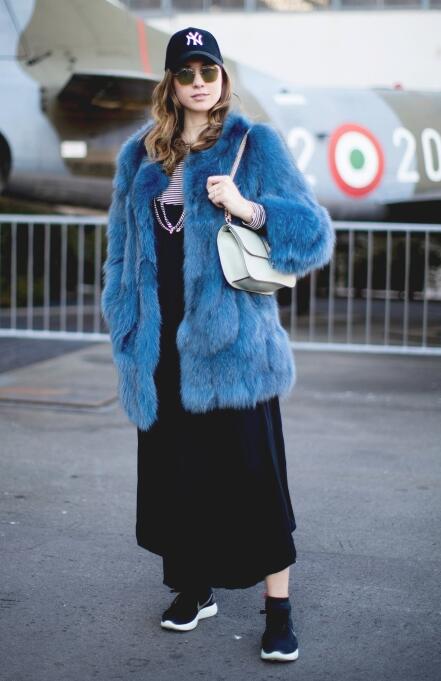 冬天最保暖的外套当然是皮草了,皮草早已经不再是奢华贵妇的专属,各式各样的皮草已经成为了街头的时髦单品,各种混搭更是有个性。皮草混搭运动鞋,颠覆了皮草原有的风格,全身造型非常年轻。