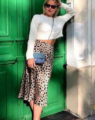 豹纹的半身裙搭配简约的蕾丝上衣,温婉中又带着一丝性感,女人味十足。