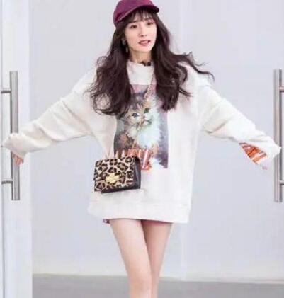 杨幂用豹纹元素搭配白色T恤和牛仔裙,少女感中又不乏一丝小性感。