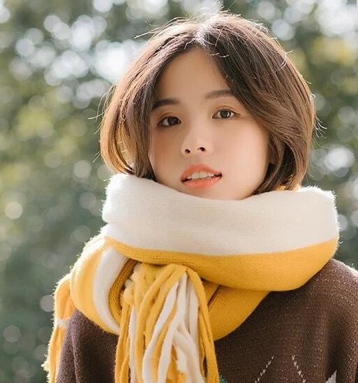 围巾,不一定是要一模一样的款式,但是因为冬天服装的颜色都比较暗,所以一款比较亮一点的围巾款式会显得脸色比较好看。并且围巾的方式现在有很多,可以披肩可以保暖可以为了好看。并且在办公室里,有些冷的话也可以当做保暖的外衫。总之围巾当然是冬天必不可少的单品。