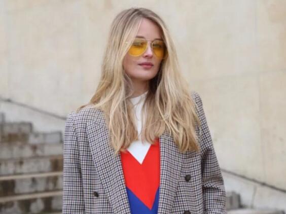 带点花色的毛衣,就很适合在外套和下装都很简单的时候点亮整个造型。比如,在外套颜色比较素的情况下,内搭亮色毛衣。