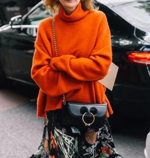 遇到这种全身颜色比较暗沉的,亮色的高领毛衣能够让你的脸色一下子了亮起来,丝毫不夸张。