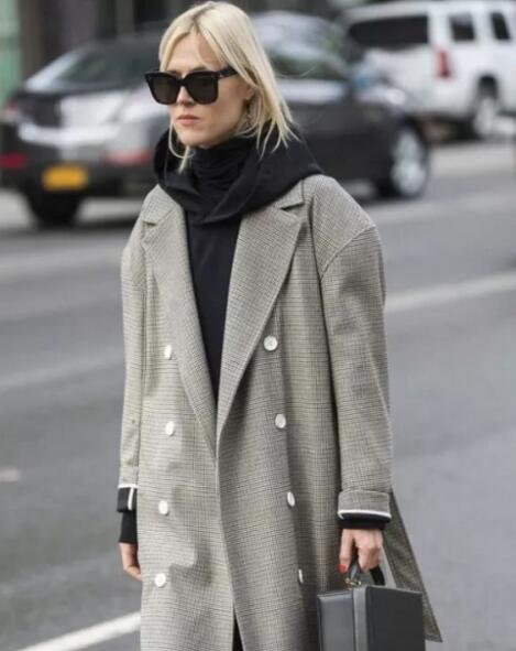 很容易显老气的格纹外套,内搭一件连帽卫衣,分分钟化身超酷少女!