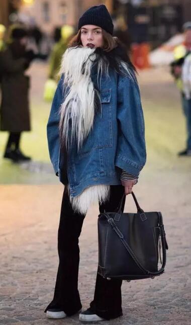 大冷天的腿是一定不冷露的,裤装上阵!流行的喇叭裤,搭配牛仔棉衣,保暖还不透风!