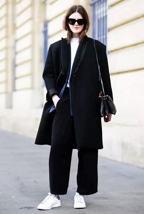4.最易搭配黑色or牛仔阔腿裤+大衣