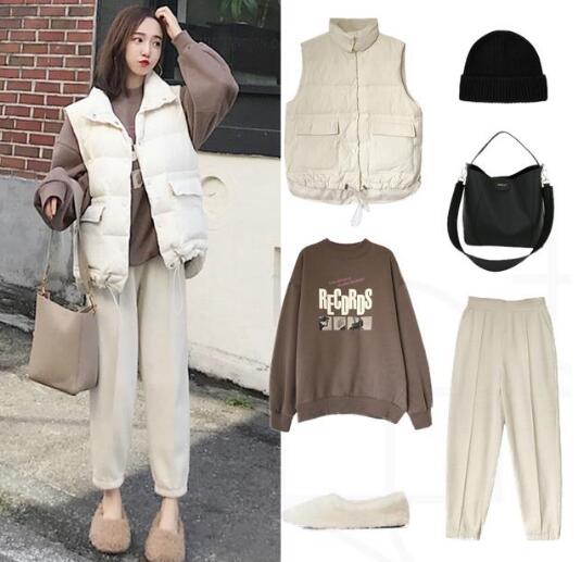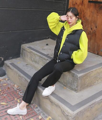 羽绒马甲内搭卫衣是最常见的穿法,既显年轻又彰显着运动的活力,而且非常舒适,打造萌萌哒少女感。在深沉单调的冬天,卫衣搭配马甲显得格外的欢快。