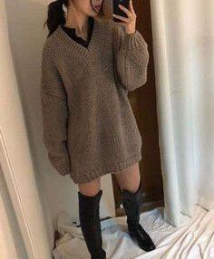 直接把oversize的毛衣当作洋装,把臀部、屁股都遮住,就不用管下半身了,像是搭配窄管裤、或是下衣失踪搭配今年流行的膝上靴都可以。