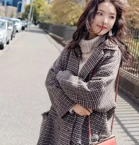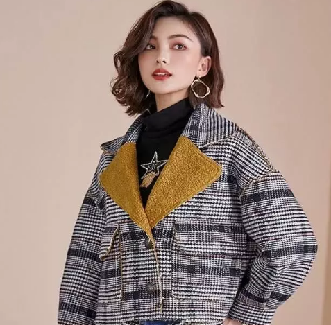 千鸟格毛呢外套女短款长袖秋冬女装