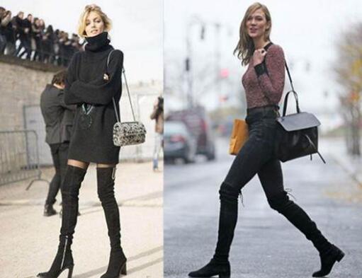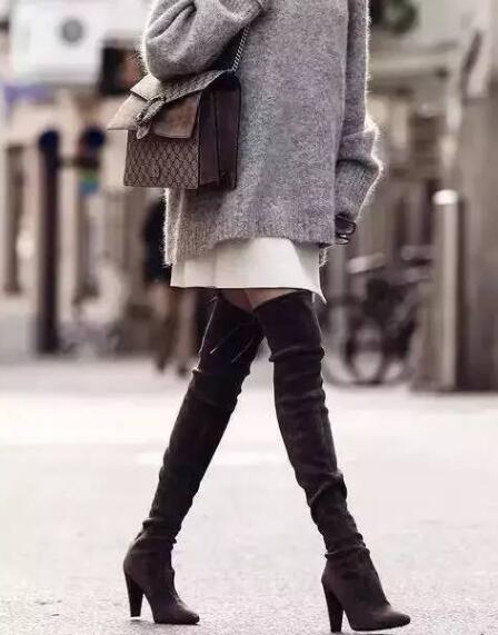 靴子的靴筒长度要避免这种不长不短的款款式,这只会压低你的身高,而且会把不完美的腿型显露出来。在选择长度的时候要么是过膝要么是短靴,最好搭配同色系的服装,会有延长腿部线条的美好错觉。