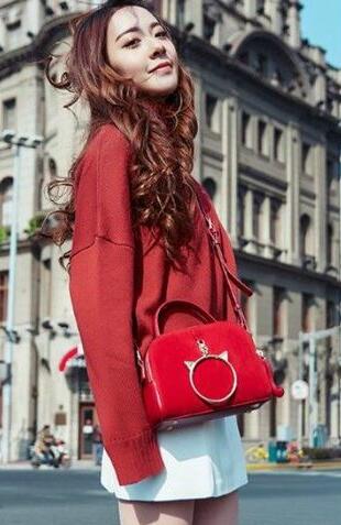 都说对于女人来说“包治百病”,所以选择一款好看的包包凹造型,实在是太重要了,这款有夸张的猫咪卡通配饰点缀的红色包包,随意拎着很随性,很时髦的感觉,和毛衣搭配是最美的了,新年不妨选择这样一款红色包包凹造型,出街回头率都会变高。
