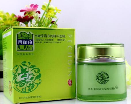 款水嫩柔滑夜间精华面膜,简称睡眠面膜,主要功效是补水。依然秉承百雀羚草本护肤的理念。