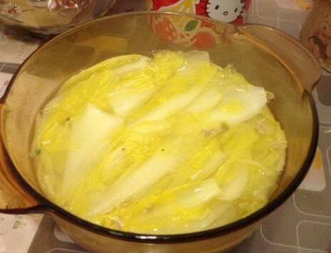 准备几片鸡肉和大白菜一起煮就很美味了,这里还有个外用的还小方法,就是直接将洗好的白菜叶在干净菜板上摊平,用酒瓶或擀面杖轻轻碾压直到叶片呈网糊状,将其贴在脸上,10分钟后取下,温水洗脸。对于治疗痘痘很有效果呢!
