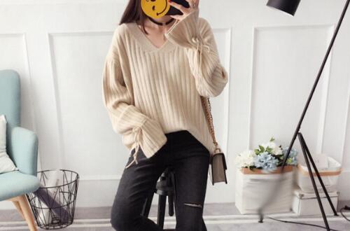 这款毛衣肩线的位置比较靠下,而且领口相对也略大,可以很轻易的就营造一种慵懒气质,如果想要耍下小性感,悄咪咪的把袖子往一边扯扯,露出半截小香肩看上去也是很诱人的哦~