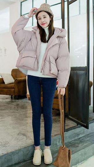 短款羽绒服搭配舒适打底裤,但是避免尴尬,上身内搭的T恤要遮掉屁屁哦。