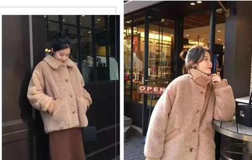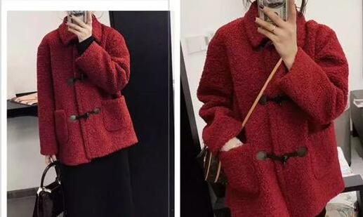 过年穿羊羔毛外套,必然少不了的就是红色了,这款韩式羊羔毛外套,正面是牛角扣设计,给人感觉更减龄一点,很适合走学院风穿搭,搭黑色针织窄裙或紧身裤显瘦显气质,红色透露出的节日感也超级显活力。