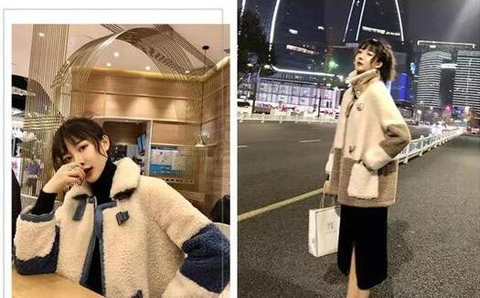 现在流行的羊羔毛外套,因为羊羔毛是外露的,毛绒短的话颗粒感就比较明显,复古感也更强一点,这样的羊羔毛外套内搭高领毛衣,再加上黑色半身裙就很有气质,侧面开衩设计的半裙适当露肤视觉上更显瘦,和拼色设计的羊羔毛外套搭配更和谐。