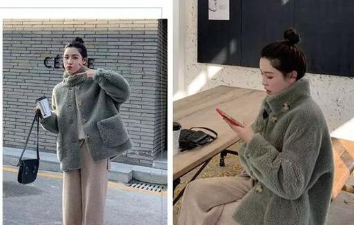 短款羊羔毛外套适合小个子女生穿,小立领设计保暖效果都赶得上围脖了,长度刚刚到臀部的短款羊羔毛外套搭锥形萝卜裤立刻显瘦,适合腿粗的女生穿了,小腿适当收紧也不会显得很臃肿,墨绿+燕麦色的颜色搭配也是很温柔的。