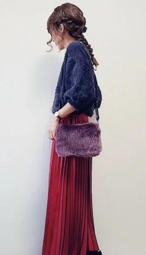 喜欢比较成熟的一点穿搭,百褶裙配短靴是首选,垂感强的丝绒百褶裙搭毛绒元素更亮眼,金属色长裙配上显贵的毛绒温暖更洋气!除了毛茸茸的毛衣,毛茸茸的背包也是冬季首选。
