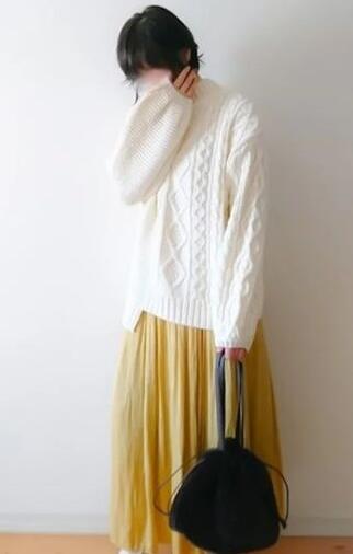 冬季大家都很喜欢的中长款百褶裙,搭毛衣就很温柔,即使是颜色比较另类的百褶裙,搭白色毛衣就没错了,一款白色粗针织毛衣就兼容了所有的“不适合”,再搭配白色帆布鞋更是清新显活力!颜色上下呼应,冬季也能元气满满!
