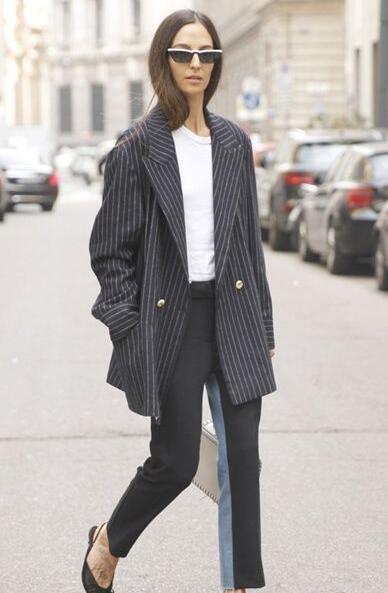 小腿不粗但大腿粗的女生适合穿什么裤子呢?推荐试试烟管裤,这样的裤子裤脚稍微收口,但也不是很近,更够遮住屁股上的肉肉,同时露出脚踝营造纤细感,在职场穿搭也是很常见的,经典黑色更帅气有型!小个子女生穿西装外套的话,配这条裤子再适合不过了!