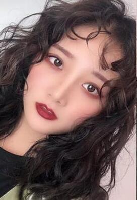4、自带慵懒气息的一款“小羊毛卷”烫发发型,齐肩长度的中长发,经过小羊毛卷烫过后,发丝以一种慵懒、随性的姿态散落在肩上,搭配中分八字刘海,一张完美的精致脸蛋就呈现出来了,好美!再给头发染上一个黑茶发色,涂抹上红唇色,好气色一秒打造。