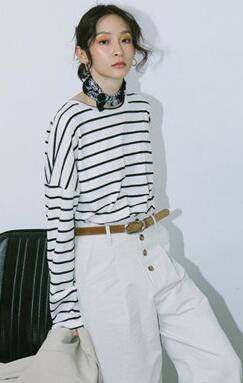 因为扎起衣服,上衣和裤子会合的中心会有衔接处,如果上衣选的款式朴素,没有太多额外设计,裤子也没有排扣或是花纹,就容易让人觉得中间空空的!所以这时候挑选一条LOGO或是设计感的皮带,一定会让整个穿搭更亮眼时髦!