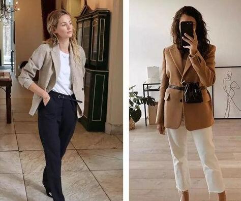 开春必备的西装外套,驼色也是必须要走一波的,驼色西装外套搭浅色裤子瞬间提亮!