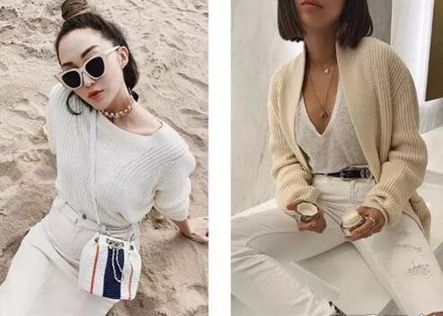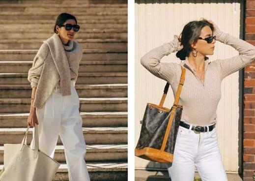 奶油色、浅驼色都是沙色的代表,这个颜色搭白色就很好看,沙色上衣+白色牛仔裤,再搭配腰带,增加细节感穿搭更耐看。
