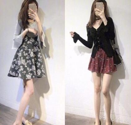碎花短裙也是春夏季碎花单品中的首选款,大裙摆设计的碎花吊带裙或裙裤款式的岁哈短裙,都能为春天增添一抹亮色,和深色上衣搭配也能变得年轻起来呢,上衣配开衫或衬衫都是很舒适的。搭高跟鞋秀美腿!